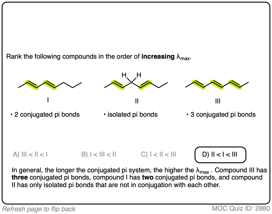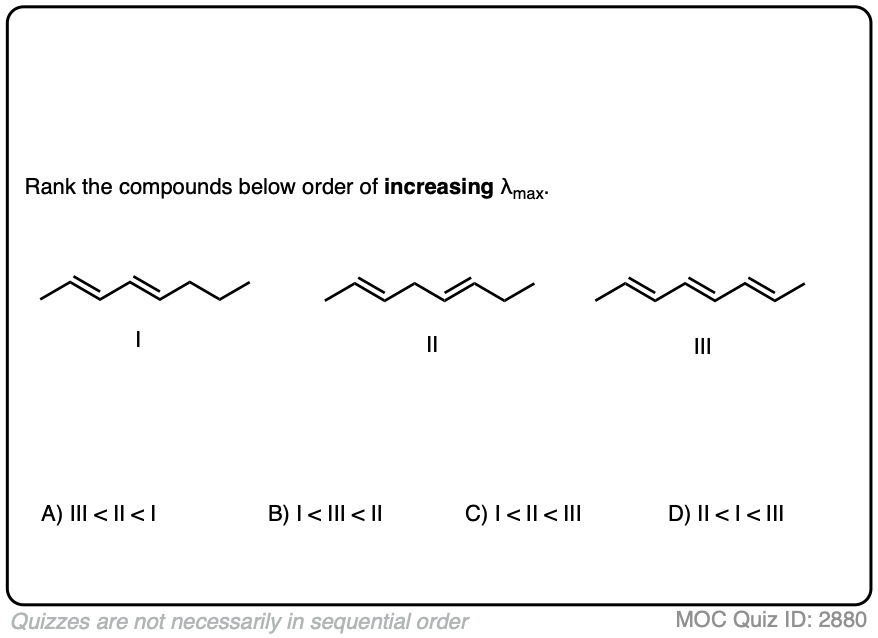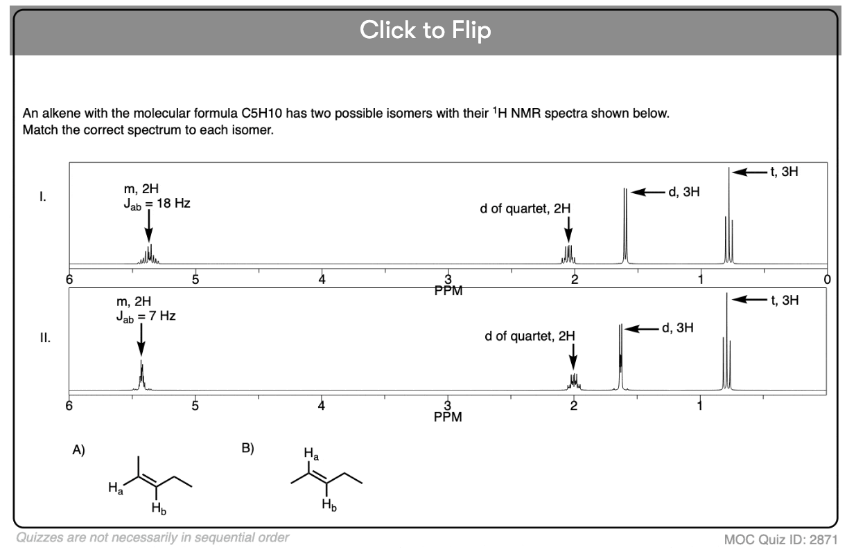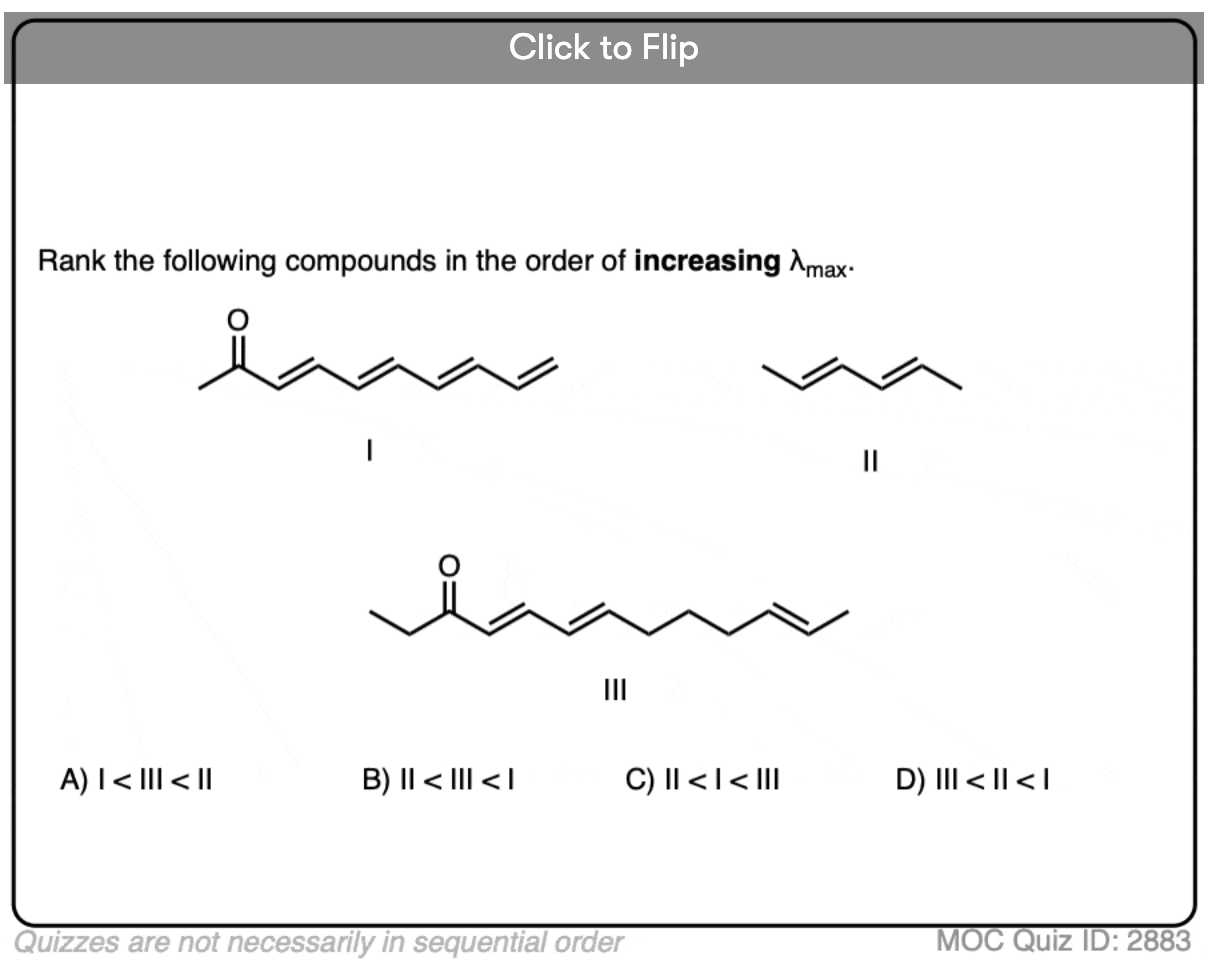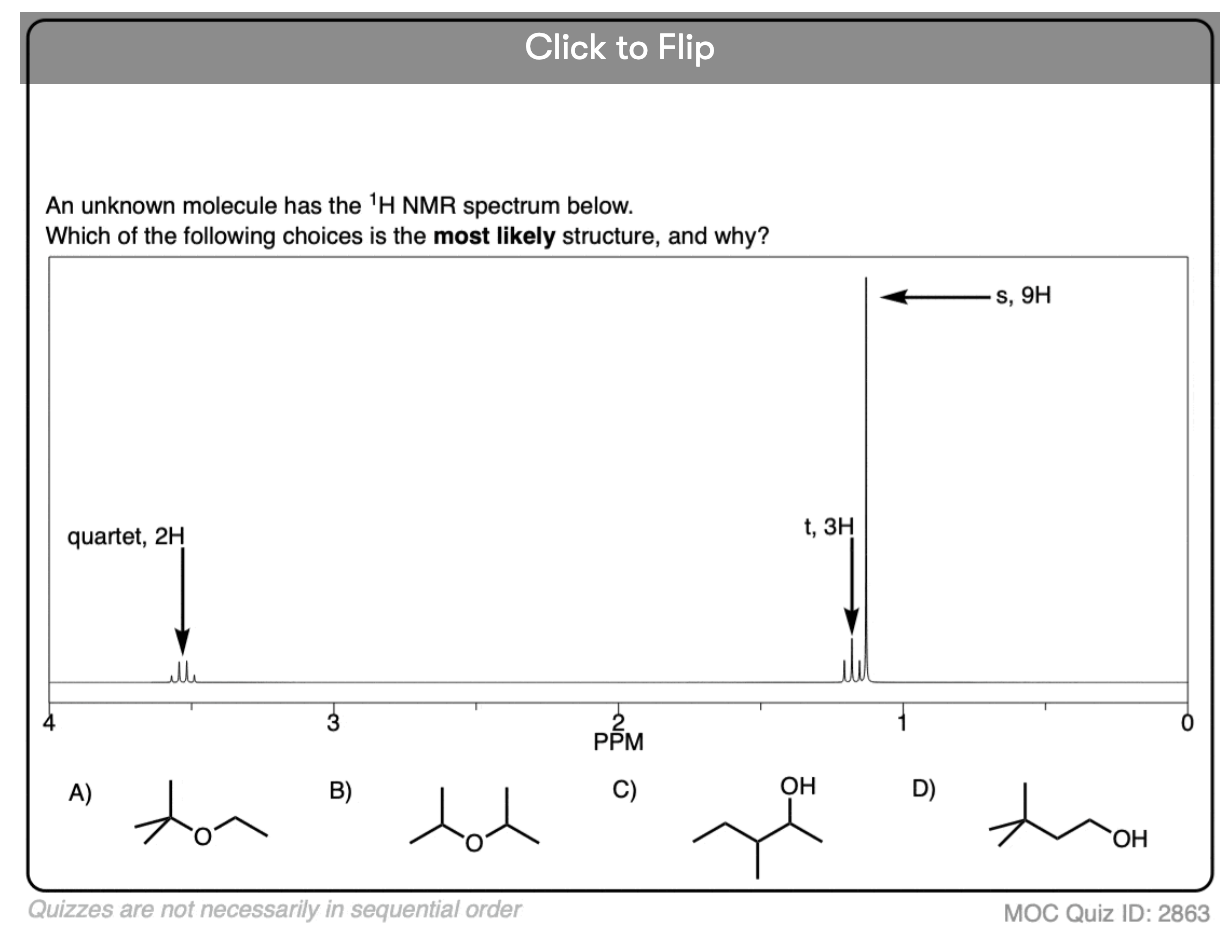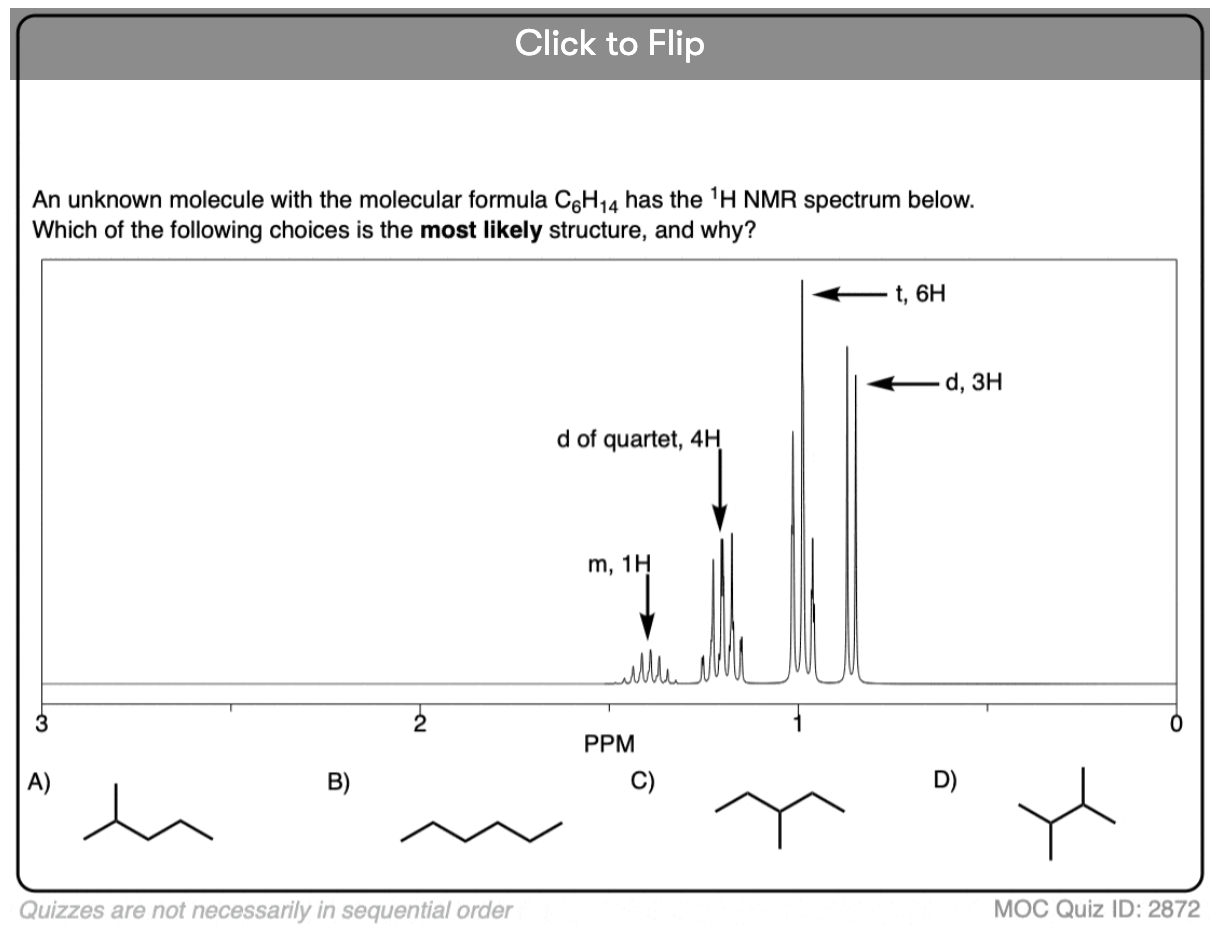 This page contains quizzes on spectroscopy topics, starting from the simplest – index of hydrogen deficiency – up to UV-Visible spectroscopy, IR spectroscopy, mass spectrometry (MS), and 13C and 1H NMR spectroscopy.
