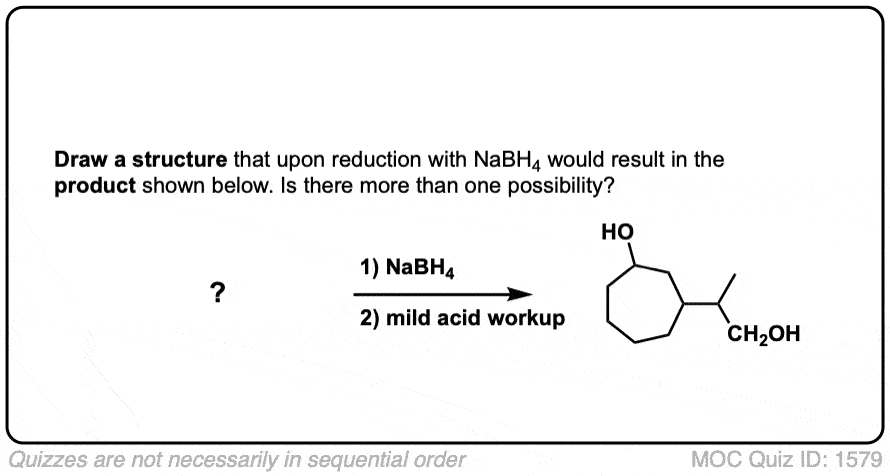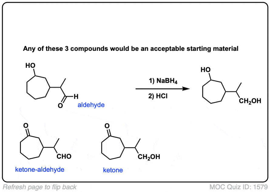 Notes: Lots of different acids can be used in the last step. It’s not important which specific acid is used, just that something is present that can form the alcohol.