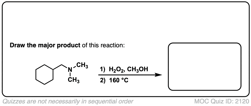 Example 3 shows the importance of stereochemistry. It’s important that the hydrogen that is removed in the Cope elimination is on the same side of the cyclohexane ring as the N-oxide. Formation of the Zaitsev alkene in this case is impossible.
