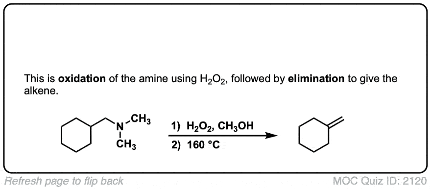 Description: The Cope elimination is a two step process whereby a tertiary amine is 1) oxidized to a N-oxide with an oxidant like H2O2, and then 2) heated to give an elimination product in a concerted reaction.