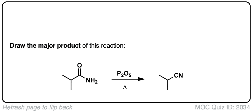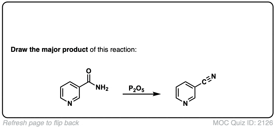 Description: Primary amides can be converted to nitriles with a dehydrating reagent such as P2O5 .