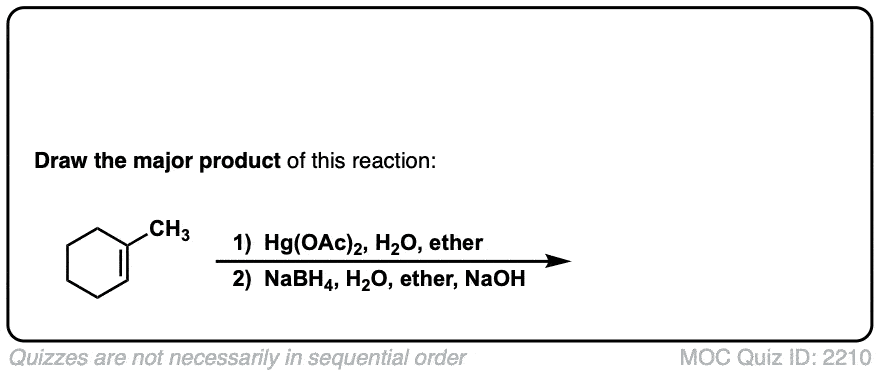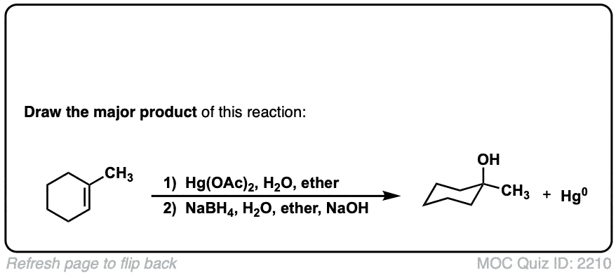 Description: Alkenes treated with mercuric acetate [ Hg(OAc)2 ] and water will be hydrated to form alcohols, after addition of NaBH4. The rest of this page is available to MOC Members only.