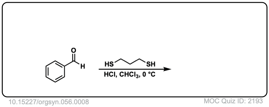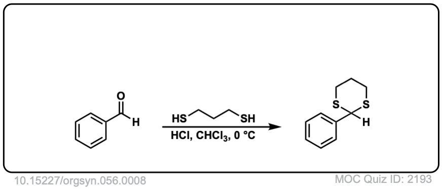 Description: In analogy to the formation of acetals from alcohols and acid, treatment of aldehydes or ketones with thiols in the presence of an acid produces a thioacetal.