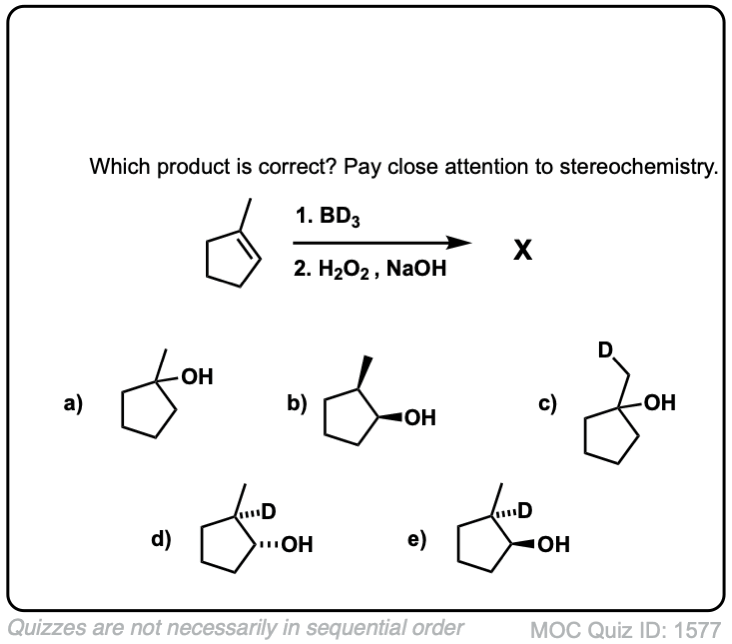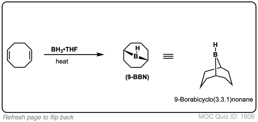 Hi! I just got my exam back and for some reason my professor took off points because I used 1)BH3*THF 2)H2O2, OH instead of 1)9-BBN 2) H2O2, OH. Our starting material was hex-1-yne and product was pentanal… If both of these reagents do the exact same thing…