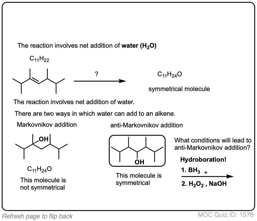 On my book, it says that 3 alkenes react with BH3, then oxidation with peroxide, finally hydrolysis with water to get 3 alcohols… Now I don’t know which one is correct, or are they both correct