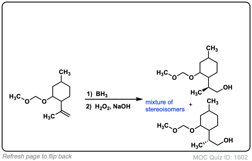 Note that only one enantiomer is shown here (but the product will be racemic)
