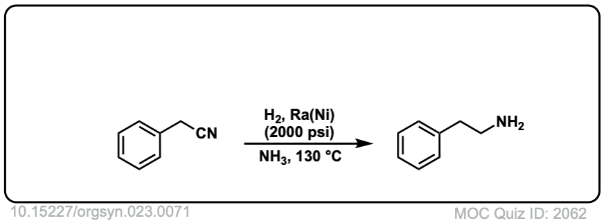 Description: Lithium aluminum hydride [but NOT sodium borohydride (NaBH4)] can reduce nitriles to primary amines.